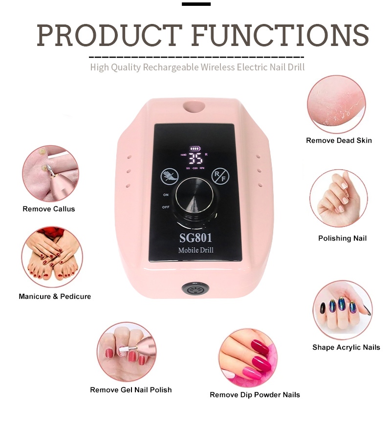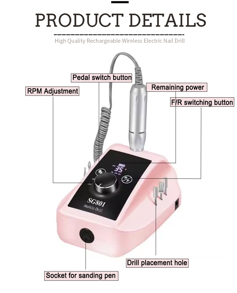 Funkce a aplikace elektrické přenosné vrtačky na gelové nehty s rychlostí 35 000 ot./min
