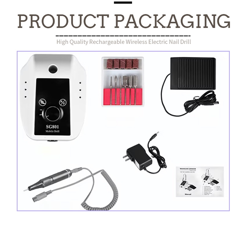 Obsah této elektrické přenosné vrtačky na gelové nehty s 35 000 otáčkami za minutu obsahuje brusné pero, nabíjecí kabel USB, návod k použití a lehkou a přenosnou krabici.
