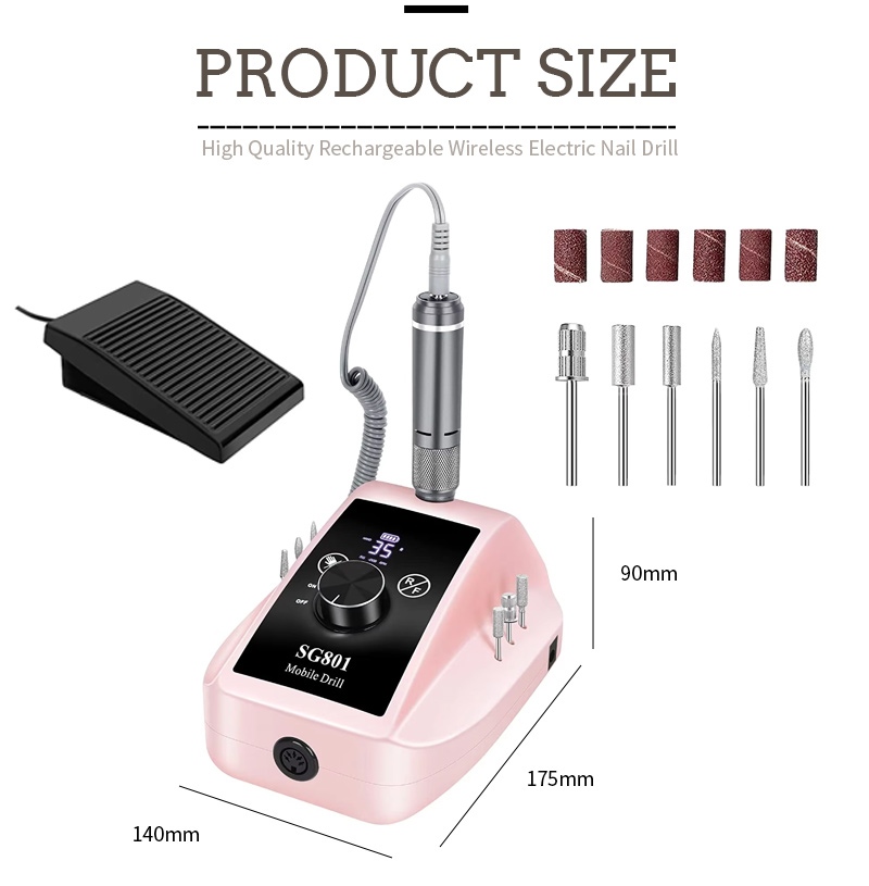 Přenosná sada vrtáků na nehty elektrická s výkonným motorem 65w 35000 ot./min