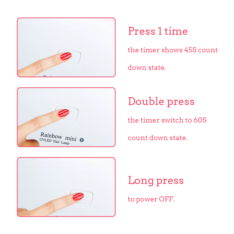 • Vysoce výkonné LED žárovky pro rychlé 10sekundové vytvrzení gelu