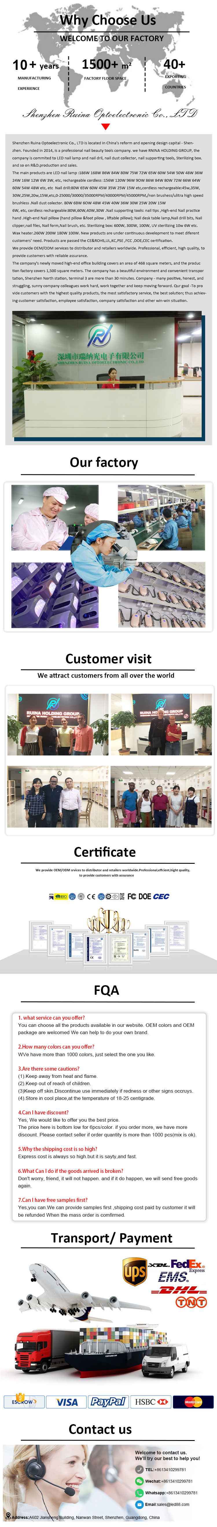 한국어Shenzhen Ruina Optoelectronics Co., Ltd., jako přední čínský výrobce, dodavatel a vývozce kompaktní lampy na sušení gelových nehtů, důsledně zastává filozofii sledování dokonalé kvality. Tento závazek si získal důvěru mnoha zákazníků k našim UV adhezivním lampám na nehty pro domácí použití. Výjimečný design, prémiové suroviny, mimořádný výkon a vysoce konkurenční ceny – to jsou přesně to, co každý zákazník očekává a co my dodáváme. Stejně nezbytný je samozřejmě komplexní poprodejní servis.