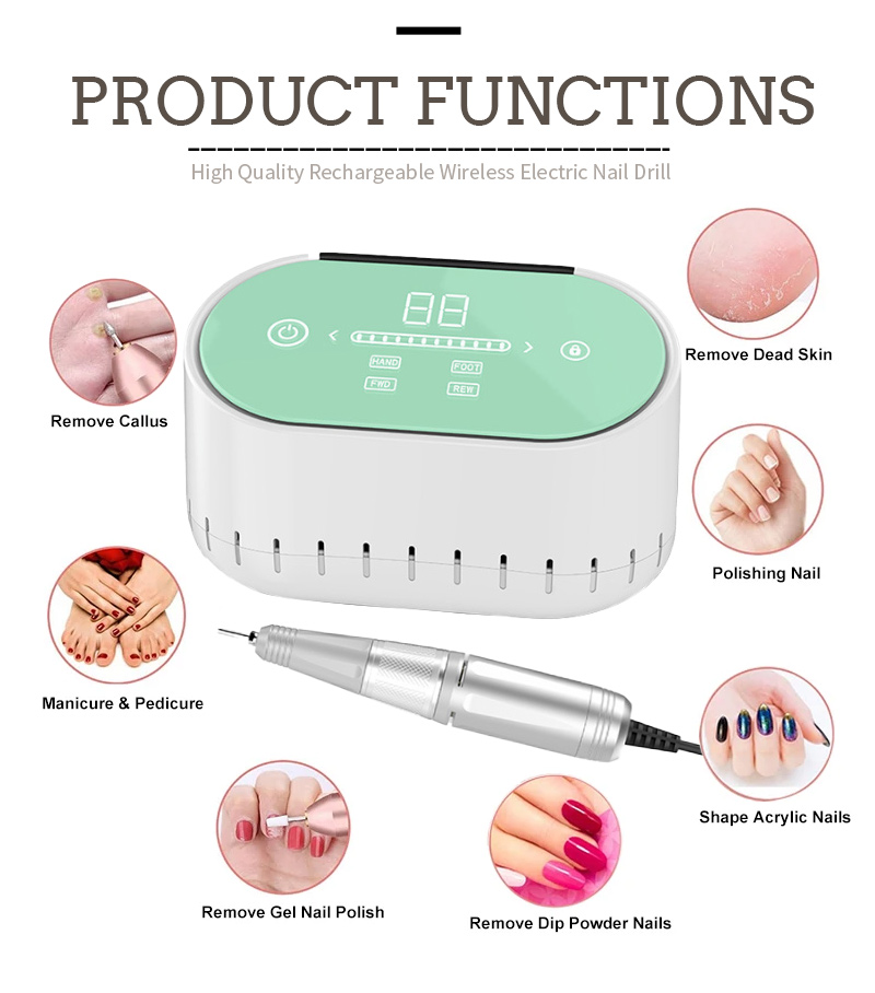 Nabíjecí akumulátorová vrtačka na nehty Výkonná 45 W 40 000 ot./min