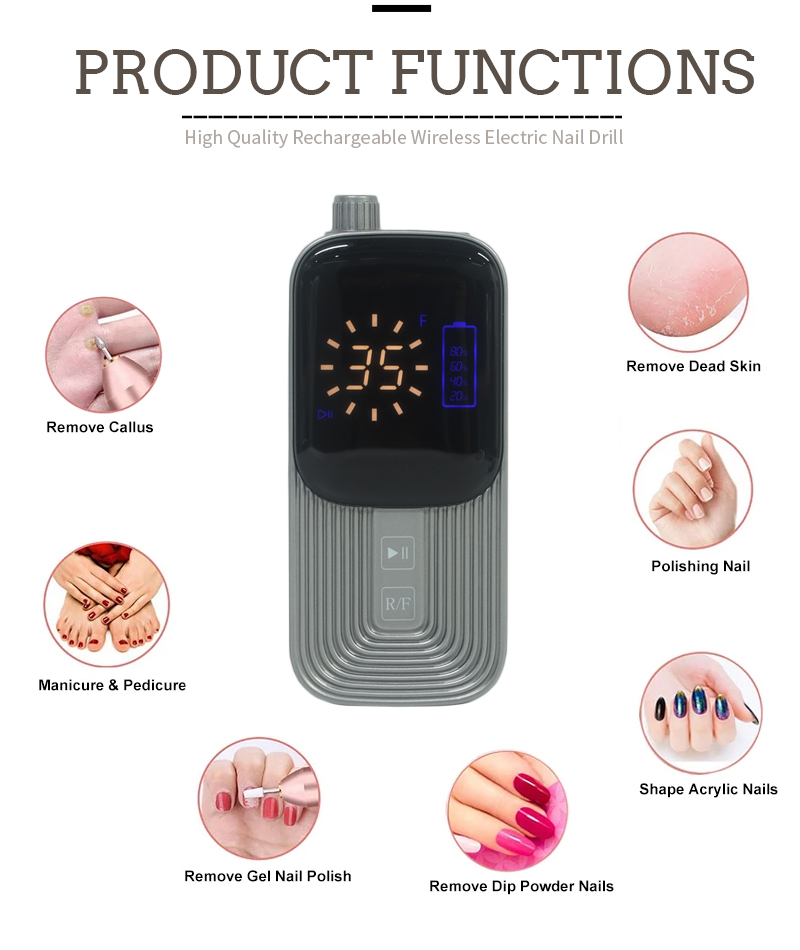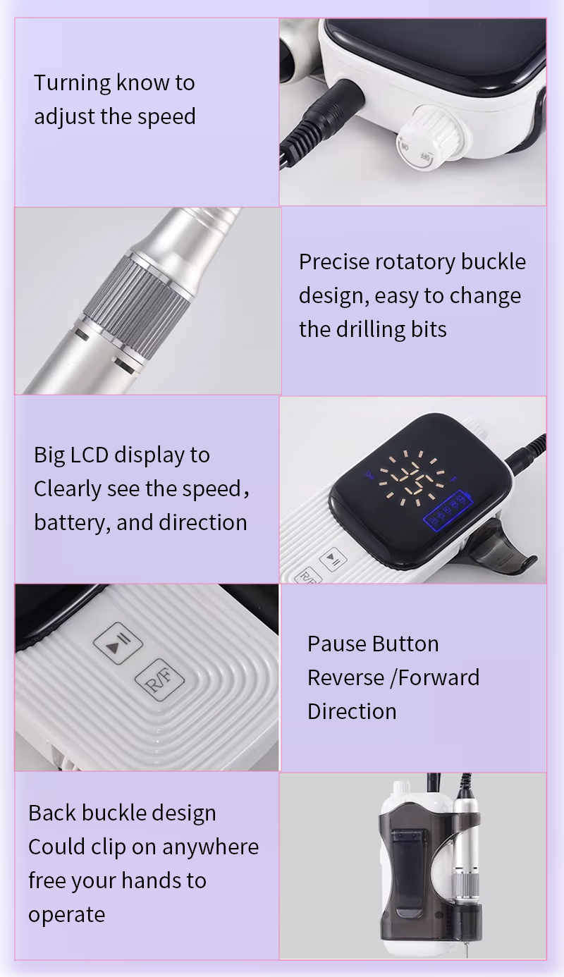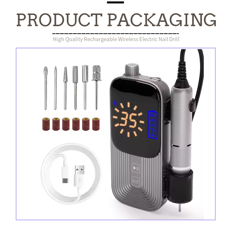 Přenosná sada vrtáků na nehty elektrická s výkonným motorem 65w 35000 ot./min