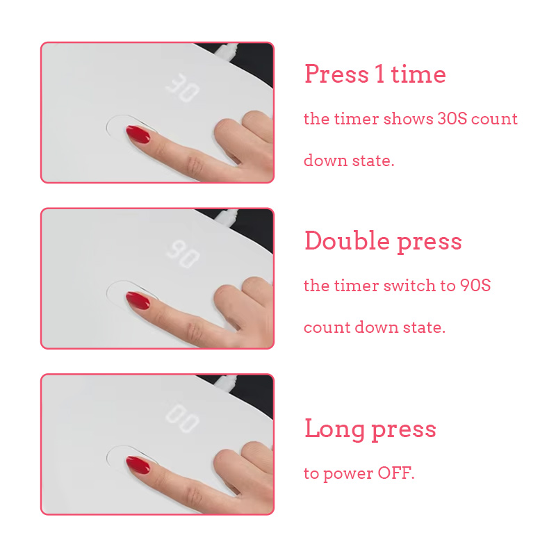 Skládací mini lampa na sušení nehtů je vybavena technologií inteligentního infračerveného snímání, která se automaticky rozsvítí, když se ruce přiblíží, a zhasnou, když se ruce vzdálí, což eliminuje potíže s opakovaným mačkáním tlačítek a šetří čas a námahu. Vysoce výkonné pečicí lepidlo nevyžaduje dlouhé čekání, což šetří čas i námahu.