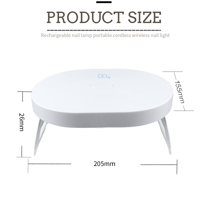 Rozměry skládací mini lampy na sušení nehtů jsou 205 mm na délku, 155 mm na šířku a 26 mm na výšku, s velkou kapacitou a možností používat ruce i nohy, což je velmi pohodlné.