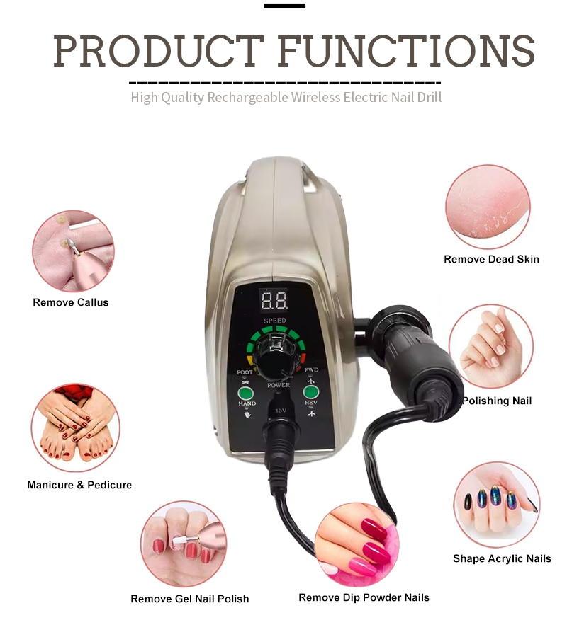 Funkce a aplikace produktu DM-014A Vysokorychlostní 35 000 ot / min elektrických nehtů pro odstranění laků na nehty