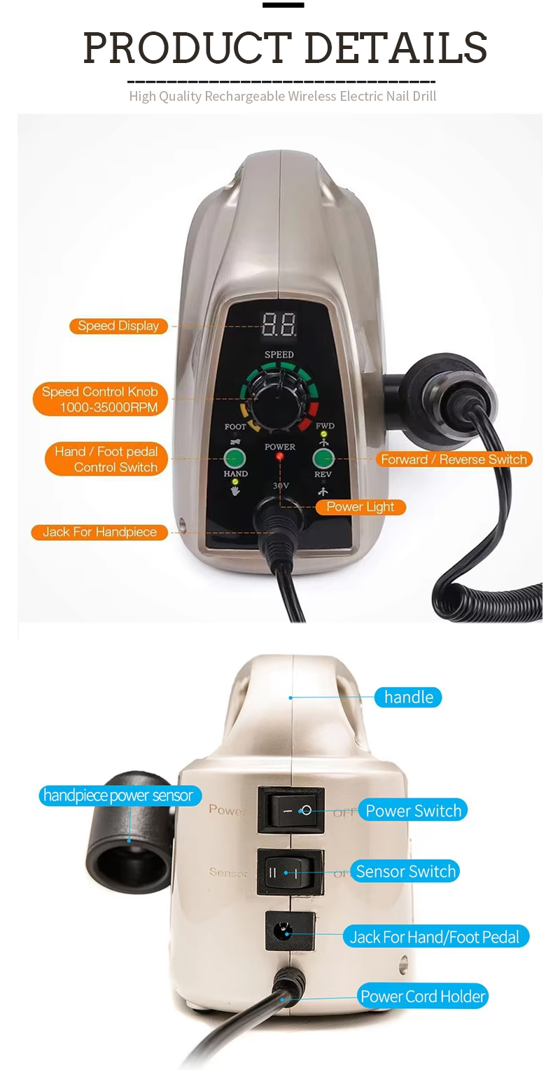 Přenosná sada vrtáků na nehty elektrická s výkonným motorem 65w 35000 ot./min