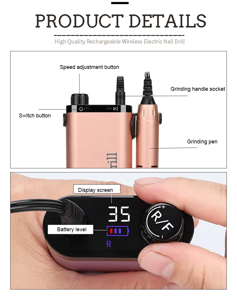 Přenosná sada vrtáků na nehty elektrická s výkonným motorem 65w 35000 ot./min