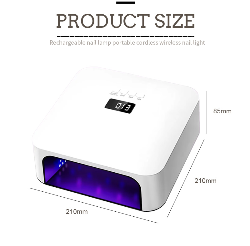 Rozměry této vysoce kvalitní lampy pro rychlé sušení nehtů jsou 210 mm na délku, 210 mm na šířku a 85 mm na výšku, s velkou kapacitou a možností používat ruce i nohy, což je velmi pohodlné.