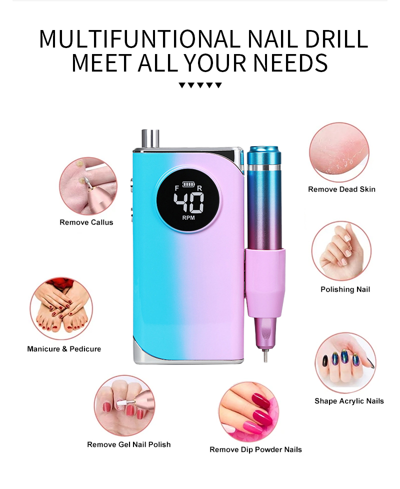 Přenosná sada vrtáků na nehty elektrická s výkonným motorem 65w 35000 ot./min