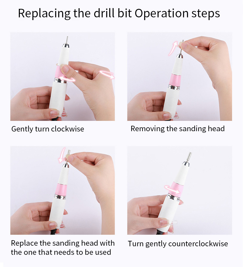 Elektrická vrtačka na nehty, která se snadno nepoškodí, násadec 65w 35000 ot./min