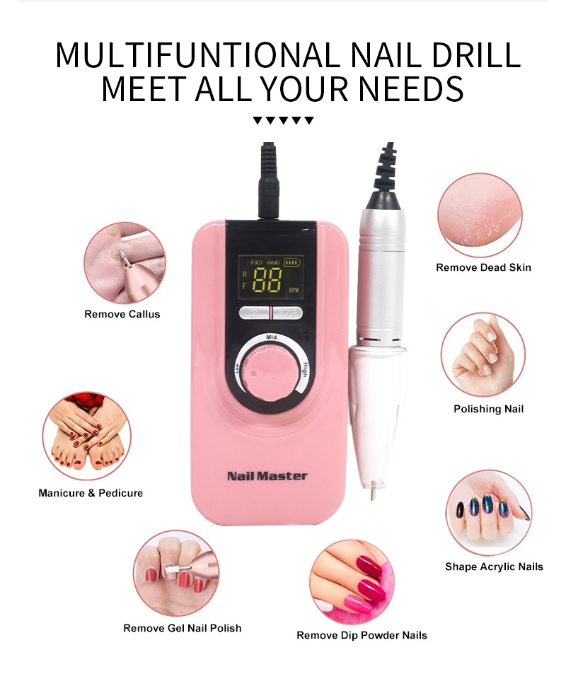 Elektrická vrtačka na nehty, která se snadno nepoškodí, násadec 65w 35000 ot./min