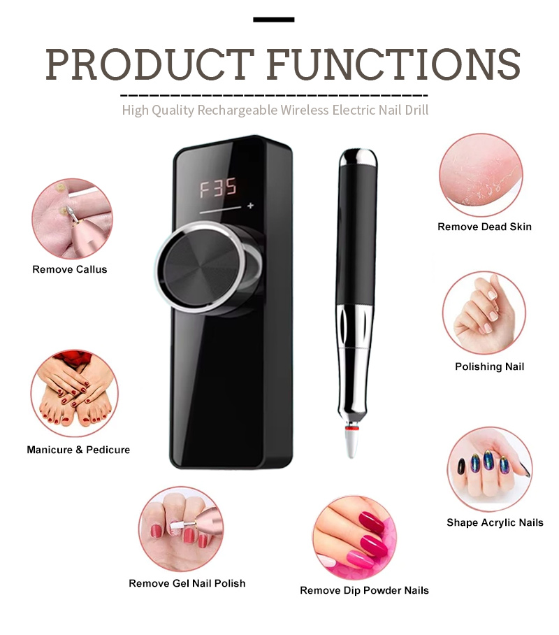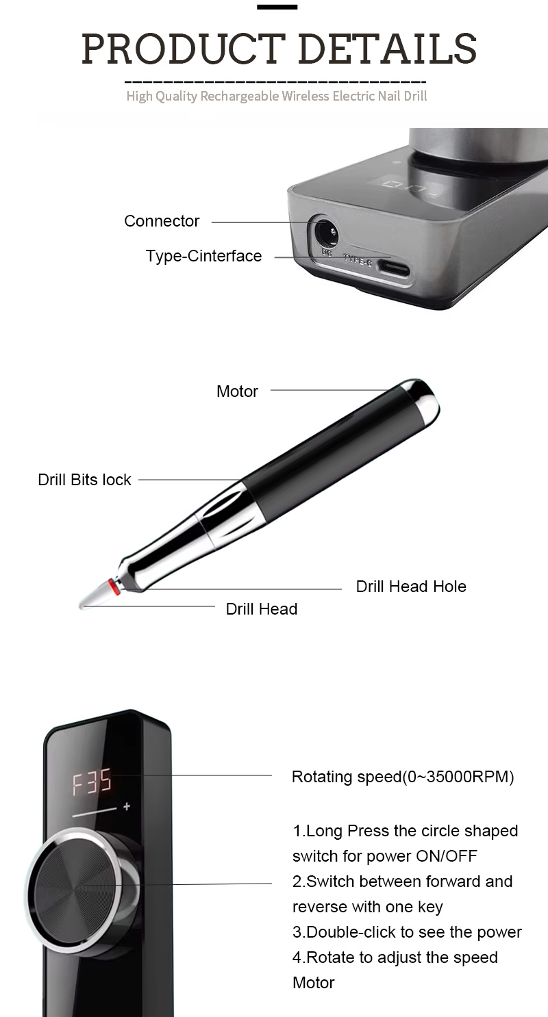 Přenosná sada vrtáků na nehty elektrická s výkonným motorem 65w 35000 ot./min