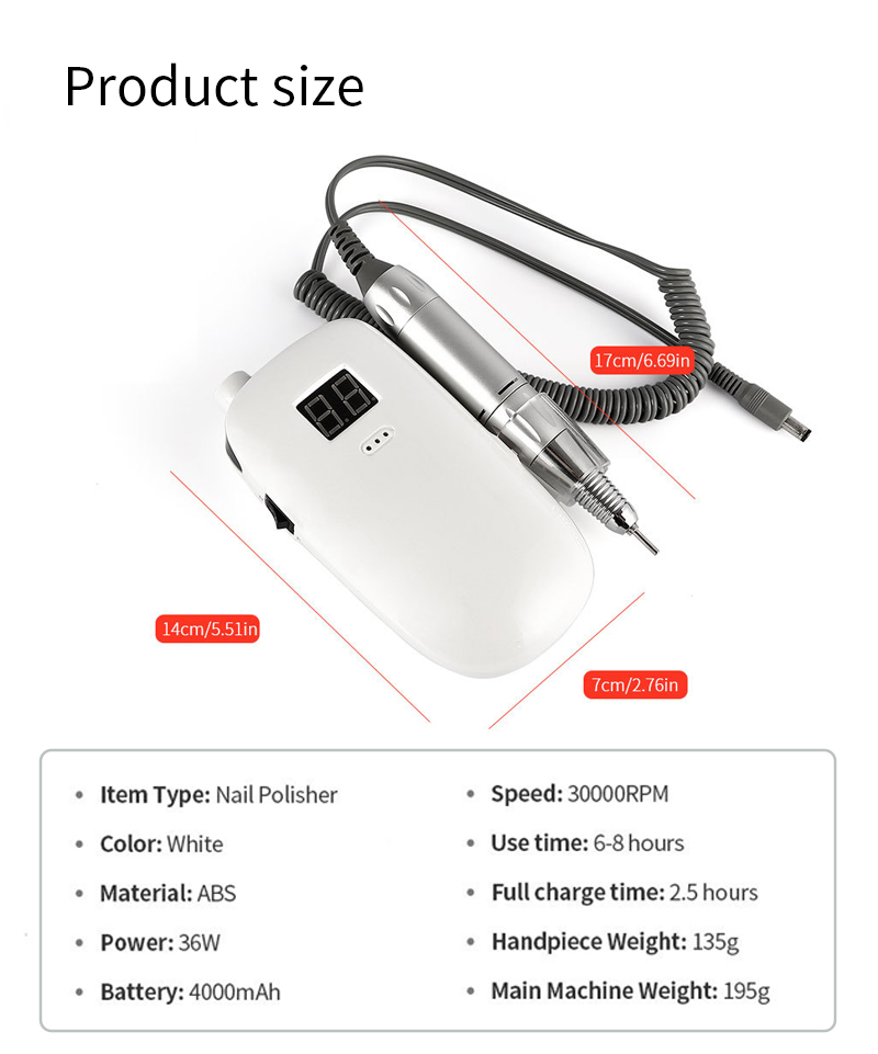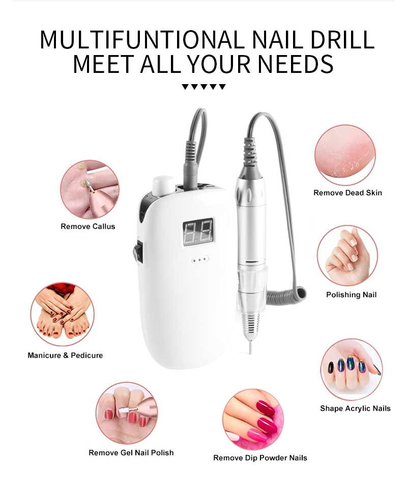 Přenosná sada vrtáků na nehty elektrická s výkonným motorem 65w 35000 ot./min