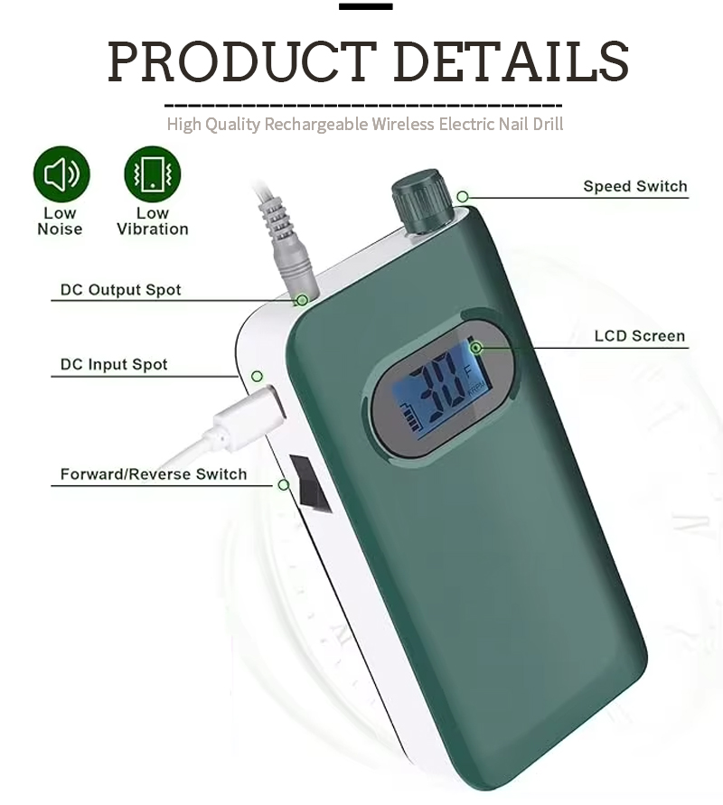 Přenosná sada vrtáků na nehty elektrická s výkonným motorem 65w 35000 ot./min
