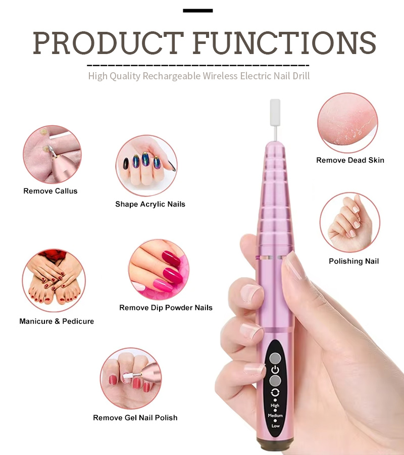 Elektrická vrtačka na nehty, která se snadno nepoškodí, násadec 65w 35000 ot./min