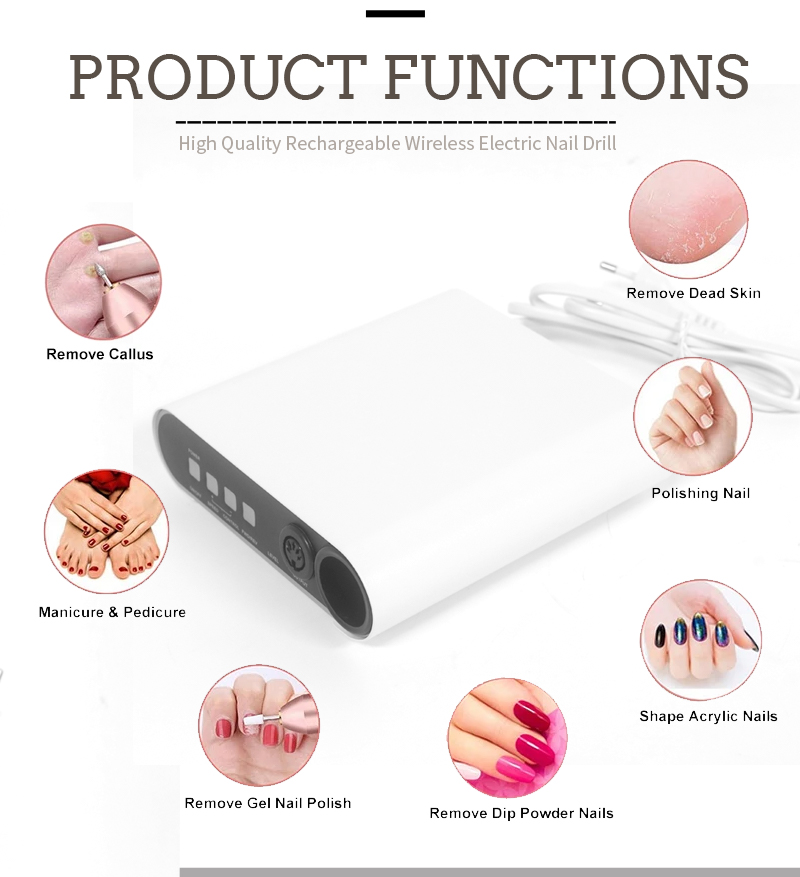 Přenosná sada vrtáků na nehty elektrická s výkonným motorem 65w 35000 ot./min