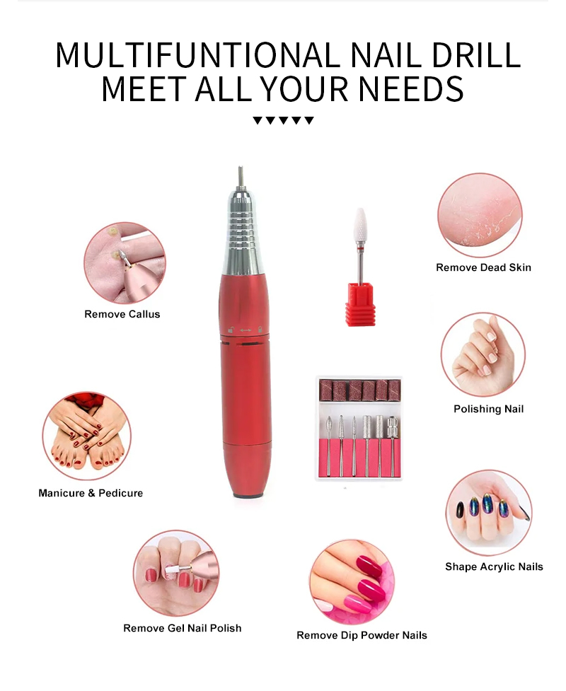 Přenosná sada vrtáků na nehty elektrická s výkonným motorem 65w 35000 ot./min