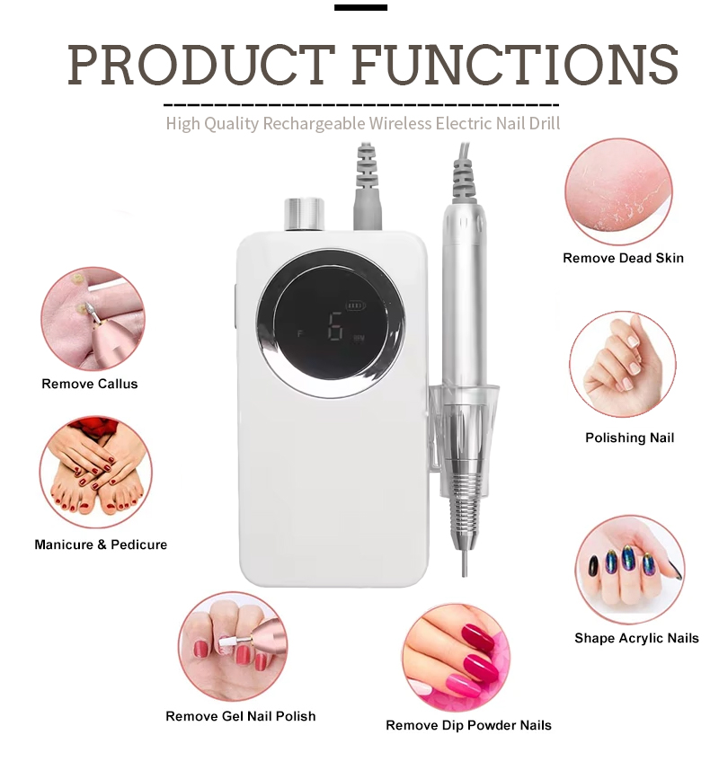 Přenosná sada vrtáků na nehty elektrická s výkonným motorem 65w 35000 ot./min