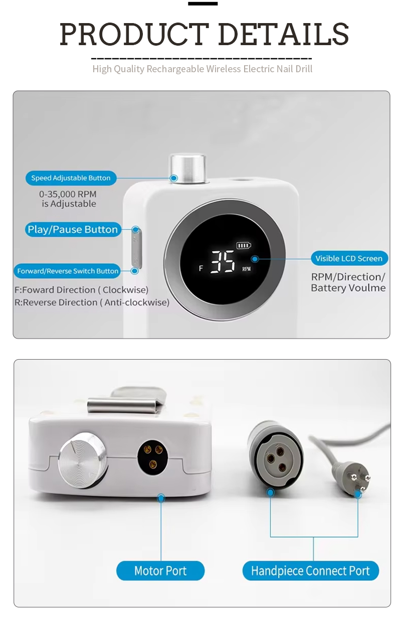Vlastnosti produktu a použití profesionálního elektrického pilníku na nehty 35 000 ot./min