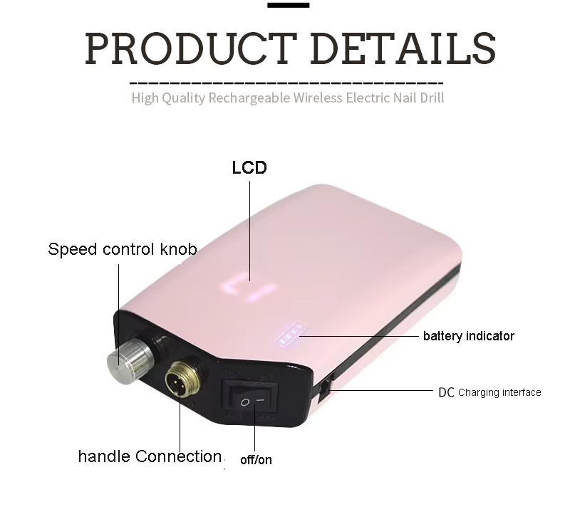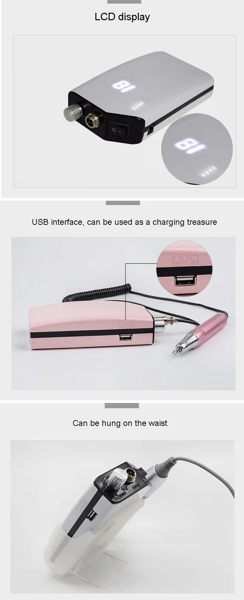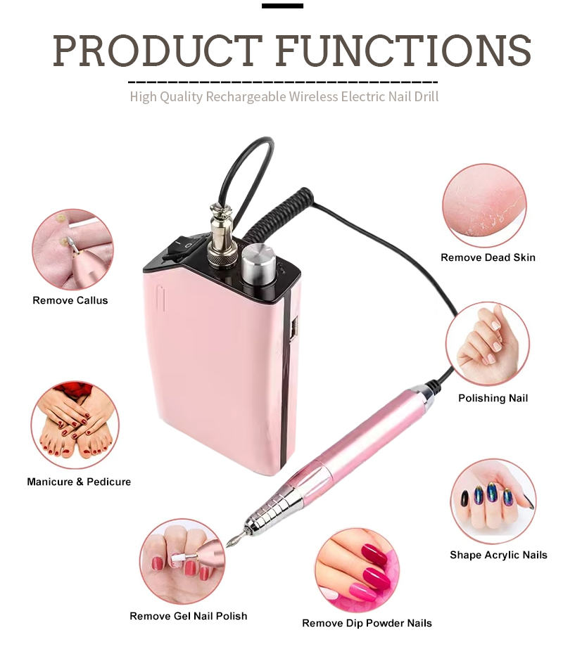 Přenosná sada vrtáků na nehty elektrická s výkonným motorem 65w 35000 ot./min