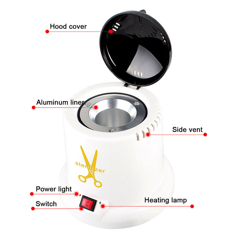 Tento sterilizátor primárně generuje teplo prostřednictvím topného prstence a využívá vysoké teploty k dezinfekci.