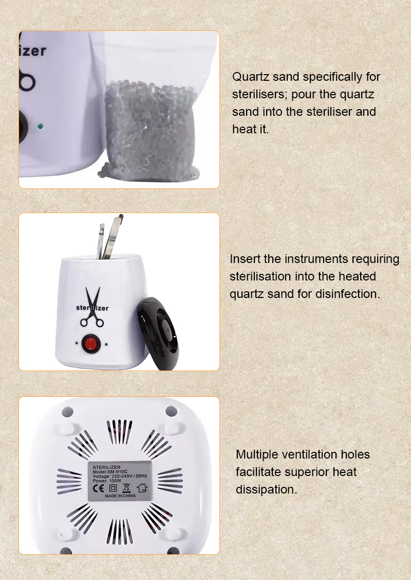 Tento sterilizátor primárně generuje teplo prostřednictvím topného prstence a využívá vysoké teploty k dezinfekci.