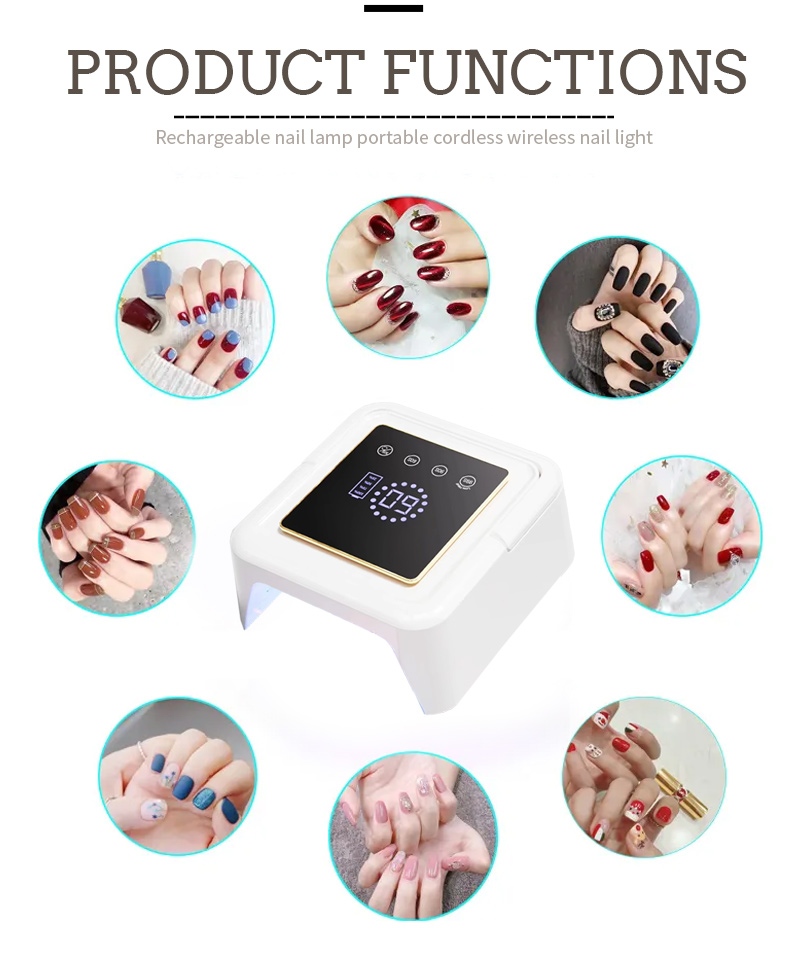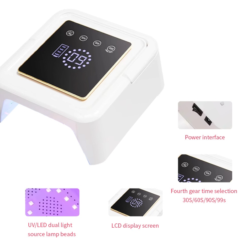 Čtvercová lampa na sušení nehtů zajišťuje rovnoměrné zasychání lepidla bez smršťování. Jeho duální světelné zdroje poskytují jemné zahřívání, aby se zabránilo zabarvení rukou a namáhání očí, vhodné pro ruce i nohy a poskytují pozoruhodně rychlé výsledky sušení.