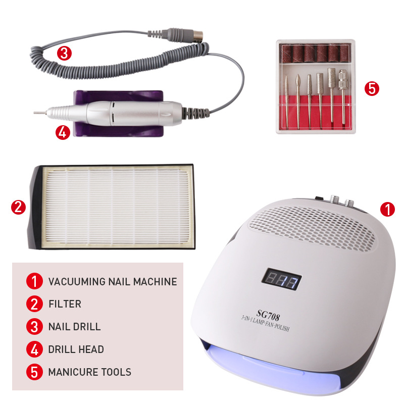 Doplňky pro zdobení nehtů: Tipy na nehty, cvičné figuríny, prémiové polštářky pro zdobení nehtů (polštářky pro ruce/nohy, výškově nastavitelné); lampy na nehty, vrtáky na nehty, nůžky na nehty, pilníky na nehty, formy na nehty, kartáčky na nehty atd.