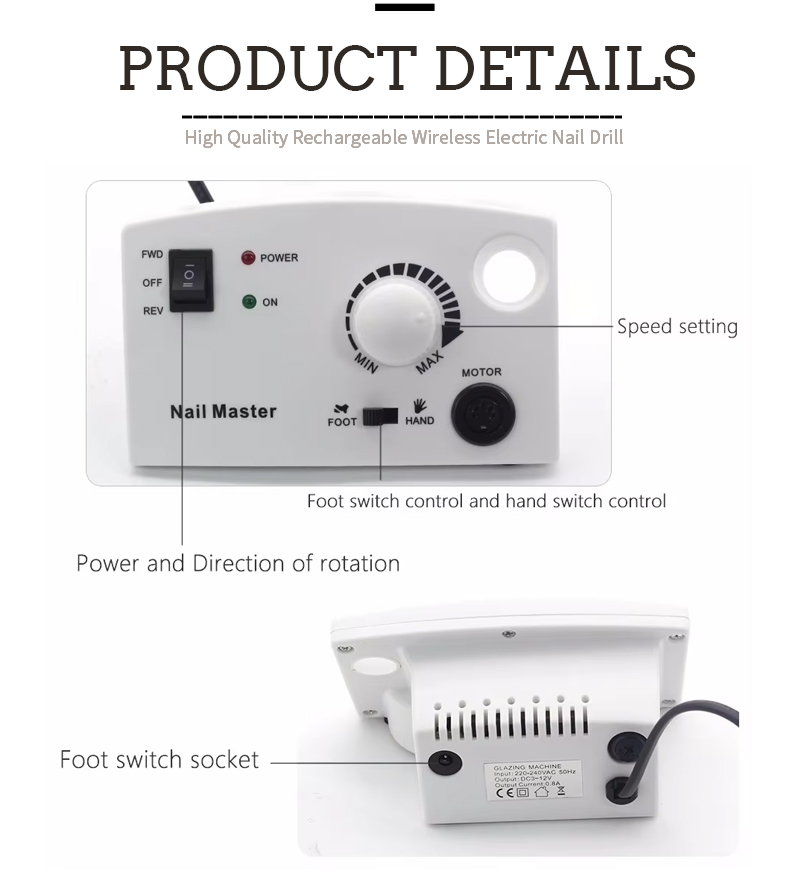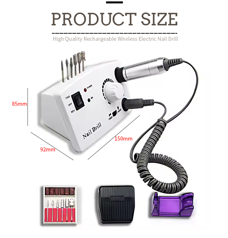 Přenosná sada vrtáků na nehty elektrická s výkonným motorem 65w 35000 ot./min